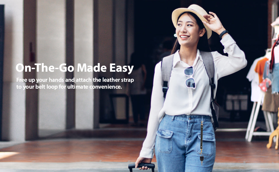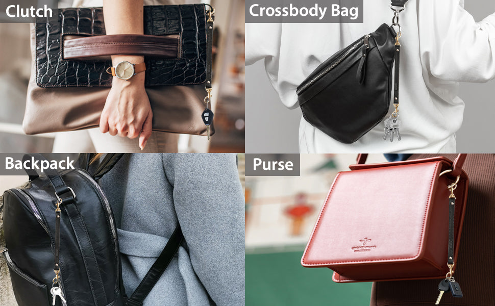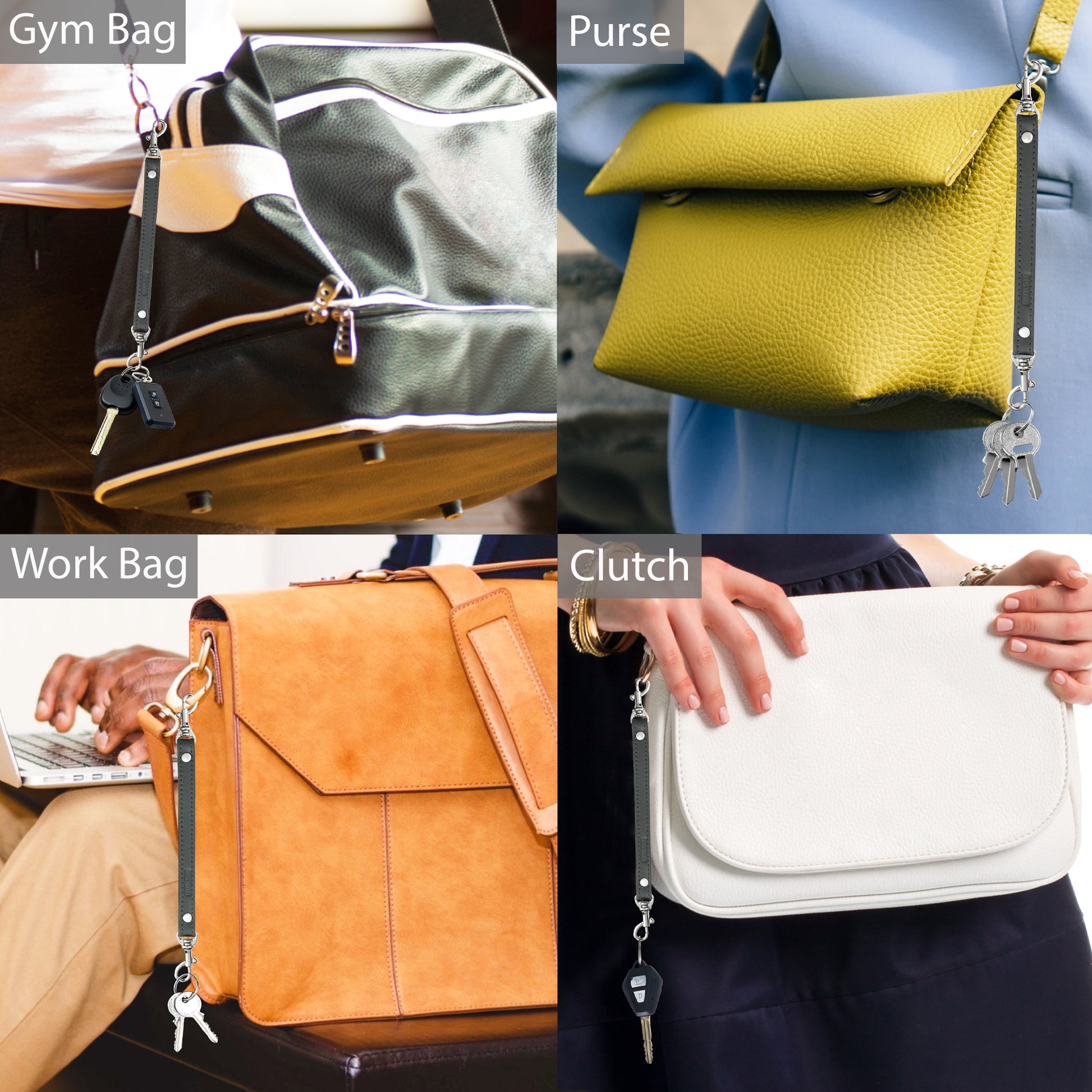 Alban Leather 2-Clip Strap for Wallet, Clutch, Wristlet Purse, Keys, Keychain for Women and Men - Gray Genuine Leather Strap with Silver Clasp